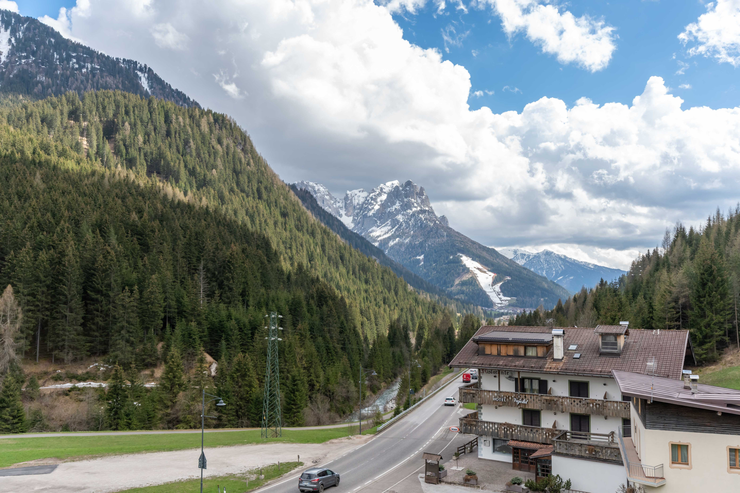 Nei giorni di maltempo, invece, potrete trascorrere rilassanti serate ammirando il magnifico panorama sul Passo Pordoi e sulla Val di Fassa, degustare un buon vino D.O.C. locale o un piatto dolomitico nell'atmosfera magica di uno chalet di montagna, grazie al profumo del legno locale.