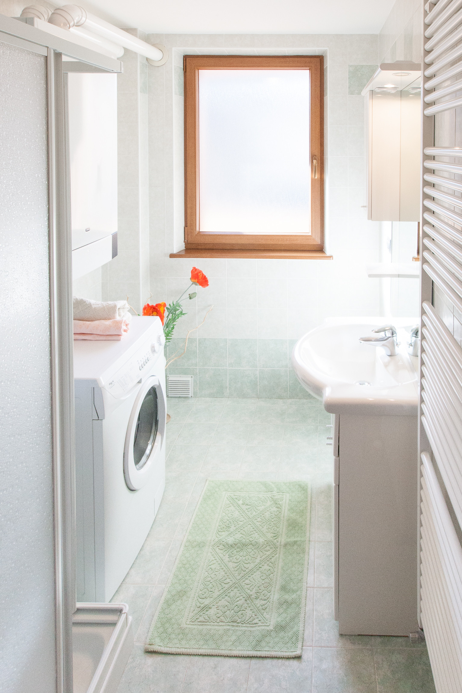 Il bagno ha la doccia e dispone di lavatrice e phon.