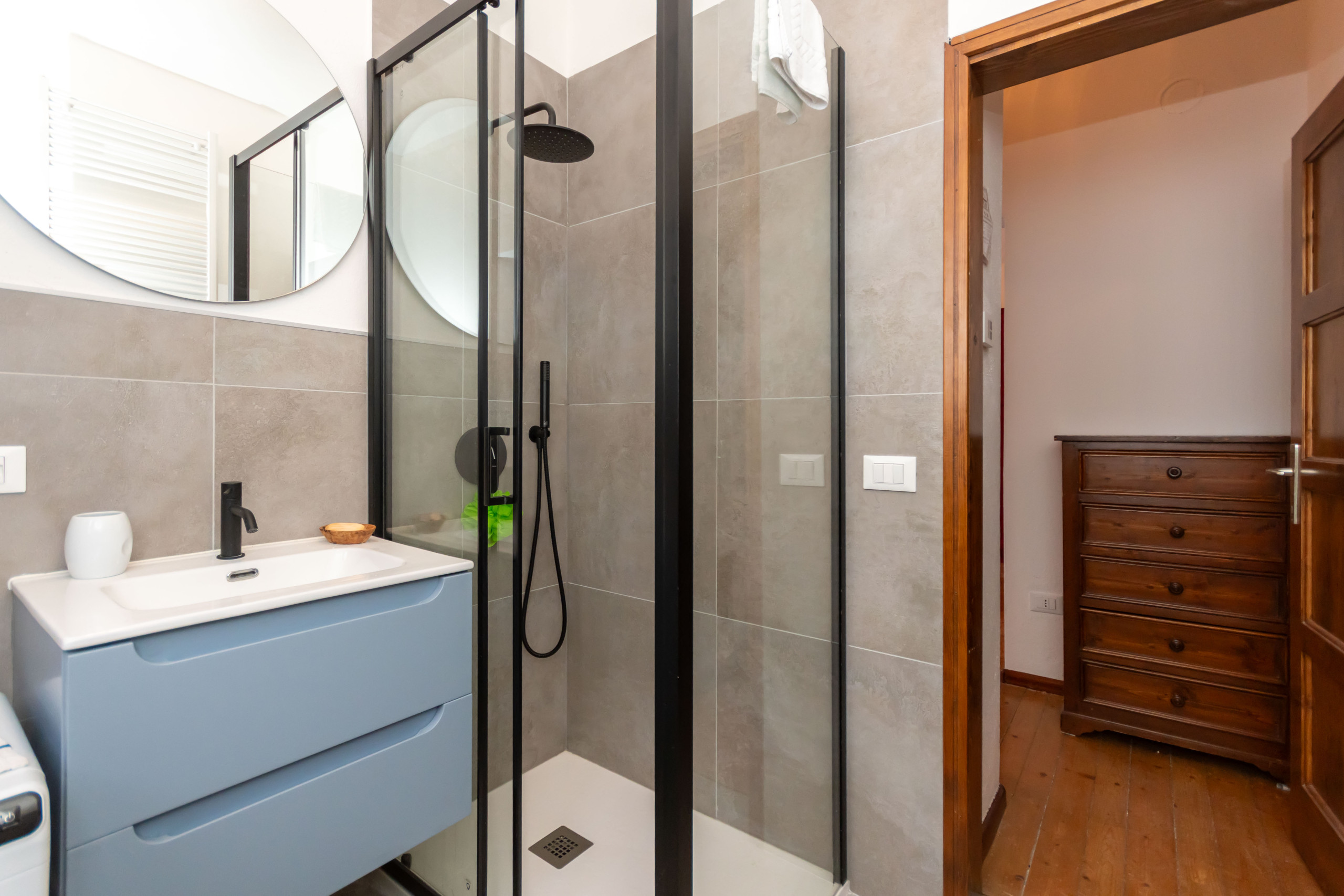 L'appartamento dispone di due camere da letto con tre diversi tipi di letti: un letto a castello, un letto matrimoniale e un divano letto matrimoniale, garantendo flessibilità e comfort per tutti gli ospiti. Un bagno con doccia completa l'assetto interno, mentre la cucina è completamente attrezzata con elettrodomestici moderni come frigorifero, lavatrice, forno, macchina del caffè e lavastoviglie.
