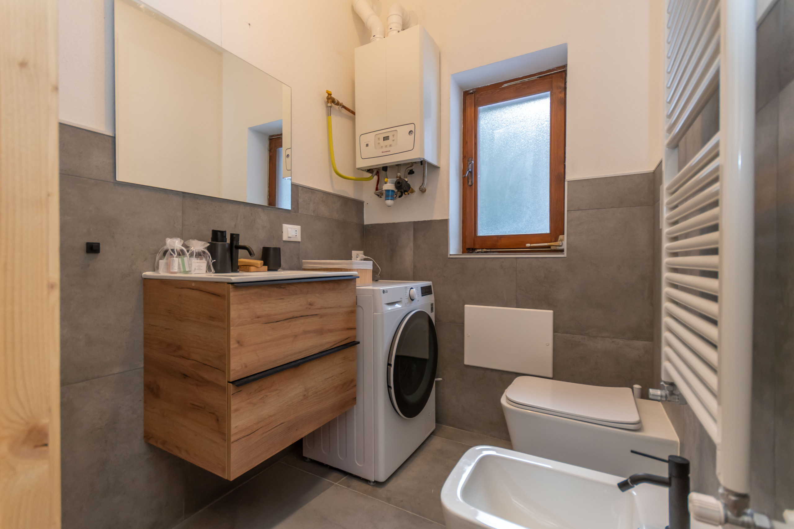 . Un bagno con doccia, lavatrice/asciugatrice completa l'allestimento interno.