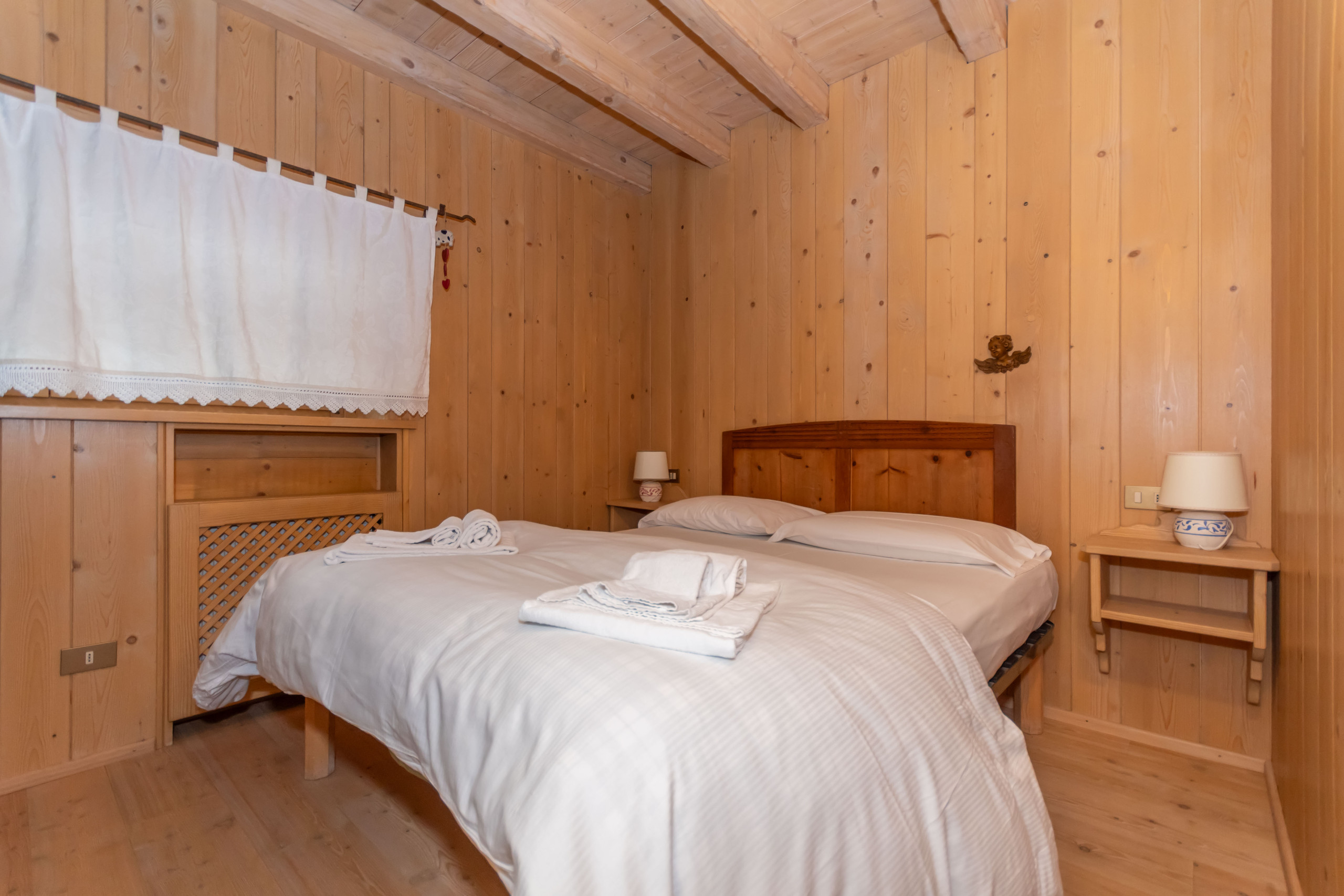 Entrando, sarai accolto da una piccola cucina abitabile. L'appartamento dispone di due camere da letto matrimoniali, una delle quali con accesso a un balconcino intimo, dove nelle serate estive potrai spesso ammirare i caprioli che pascolano nel grande prato adiacente.
