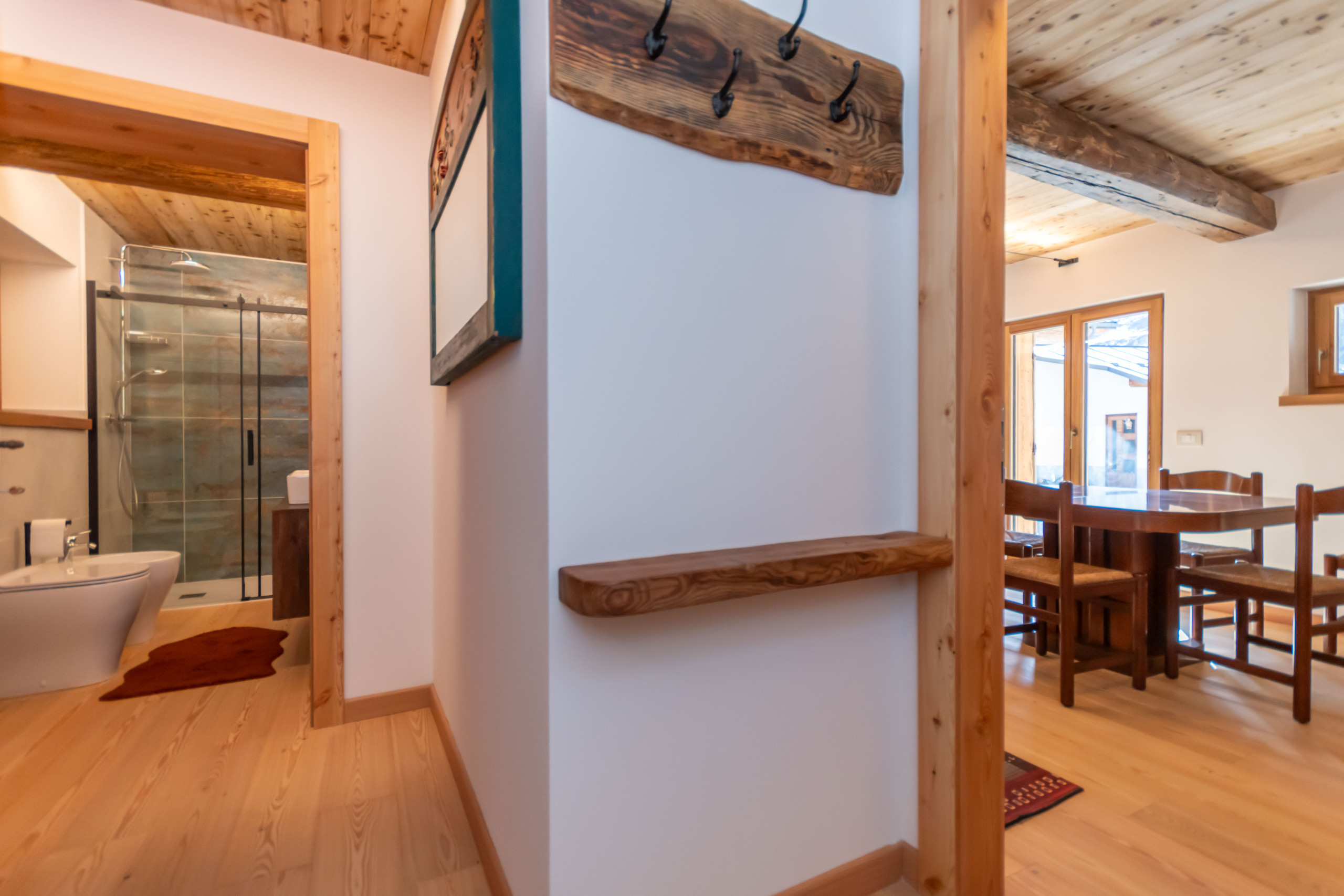 Inoltre, è presente una zona lavanderia, in comune con l'unità del primo piano, così come un deposito per sci e biciclette, a disposizione degli ospiti.