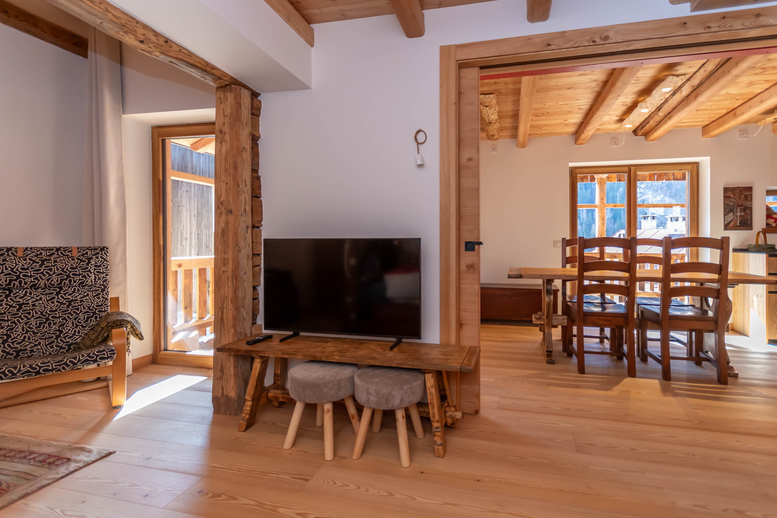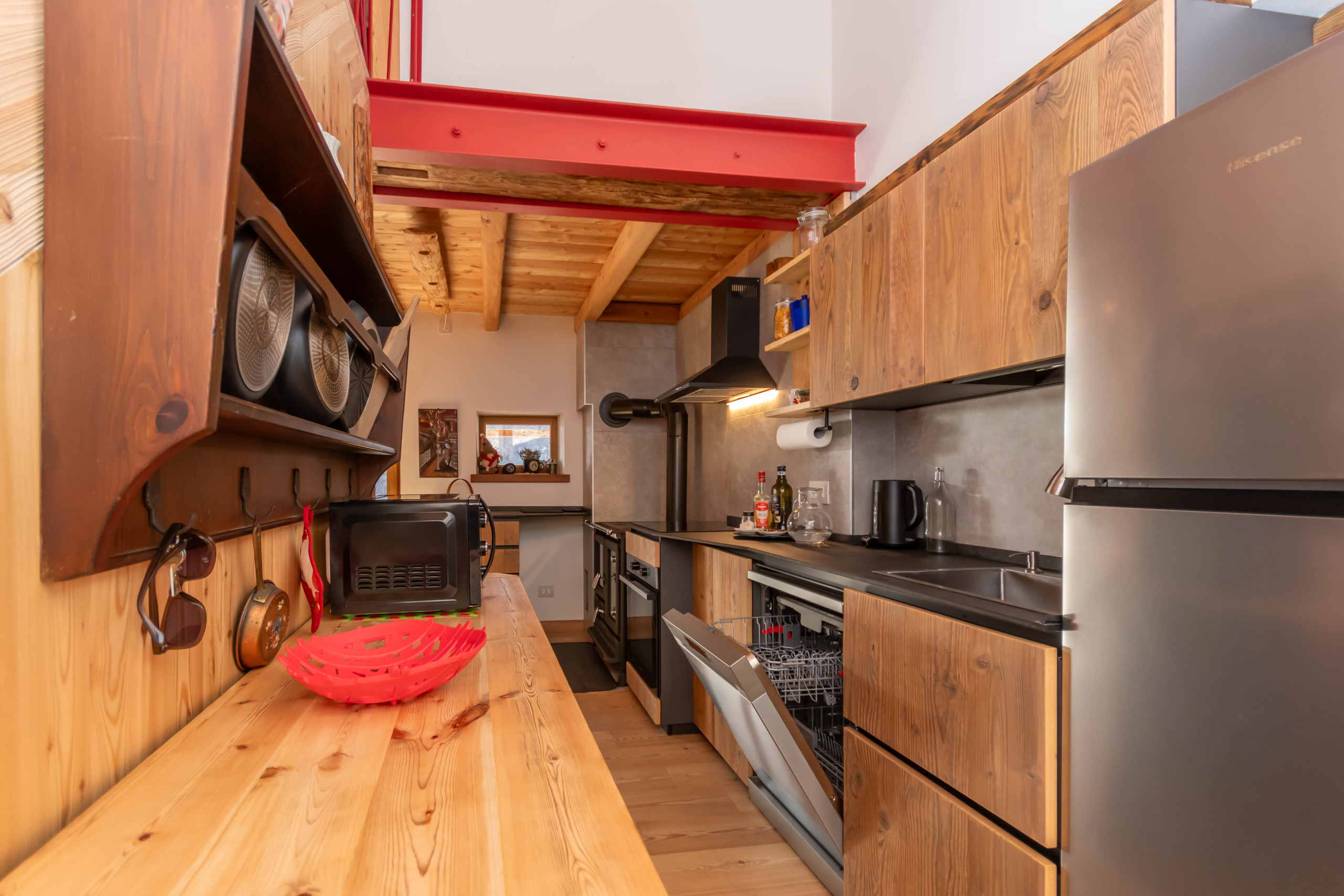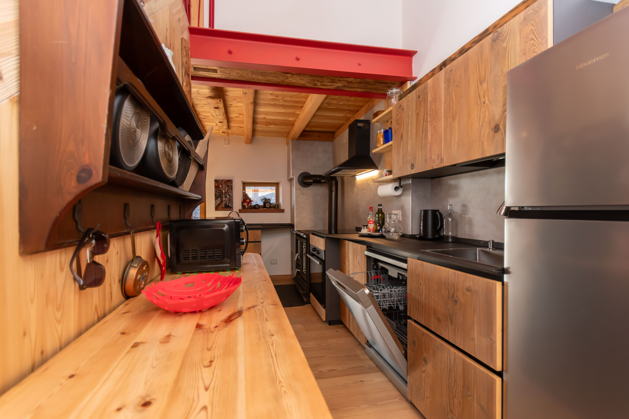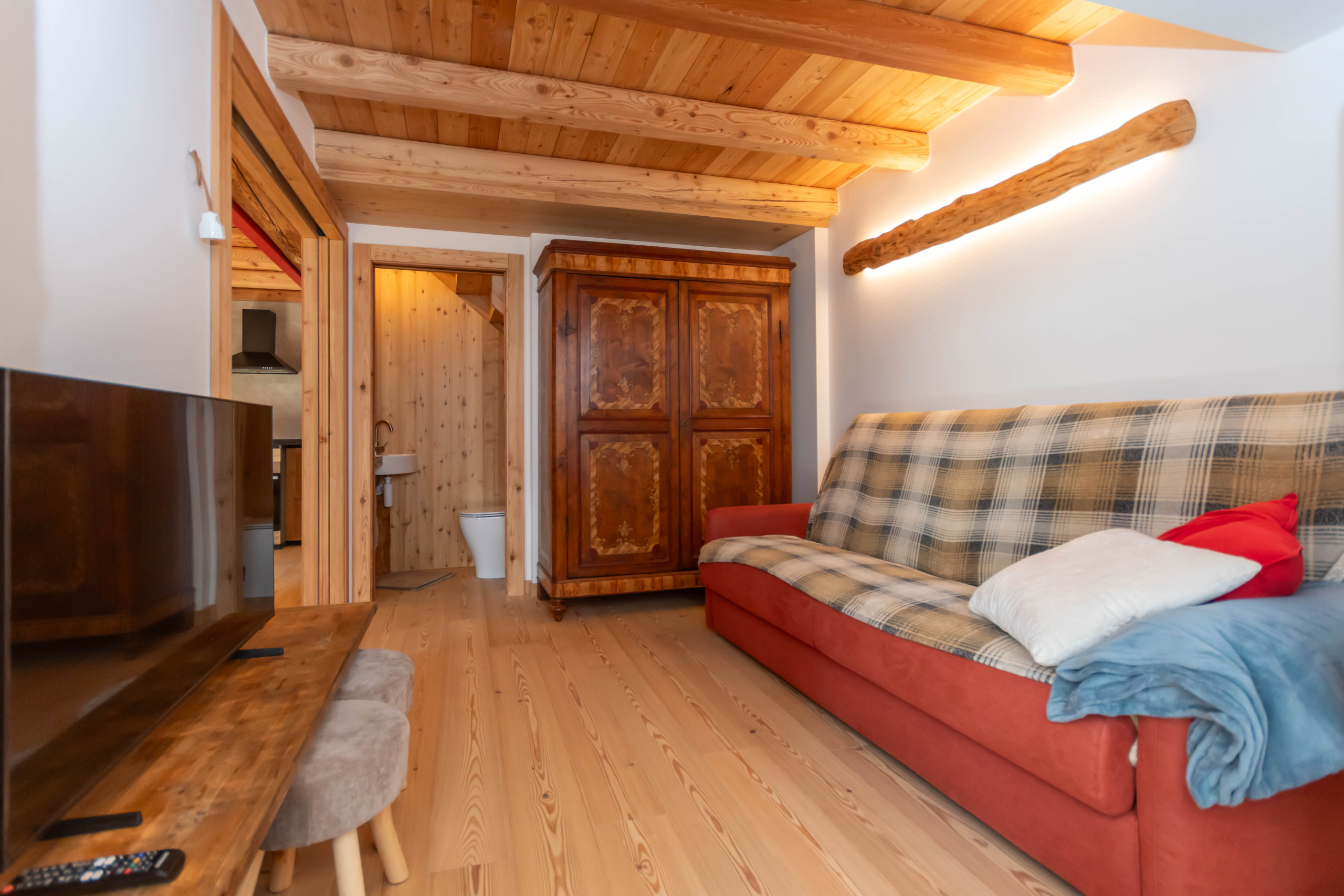 Ricavato dalla sapiente ristrutturazione di un antico Tabià, l’appartamento si sviluppa su due piani per un totale di 75 mq, creando un’atmosfera intima e ben organizzata. Al primo piano, una camera matrimoniale principale con un letto singolo aggiuntivo e un bagno completo con doccia. Al piano terra, la cucina completamente attrezzata e il soggiorno con un comodo divano letto matrimoniale. Durante la notte, grazie alla porta scorrevole, è possibile trasformare il soggiorno in una vera e propria camera, garantendo privacy a tutti gli ospiti. Un piccolo bagno con wc e lavabo completa la disposizione. La sistemazione è ideale per ospitare fino a 5 persone, offrendo comfort e funzionalità.