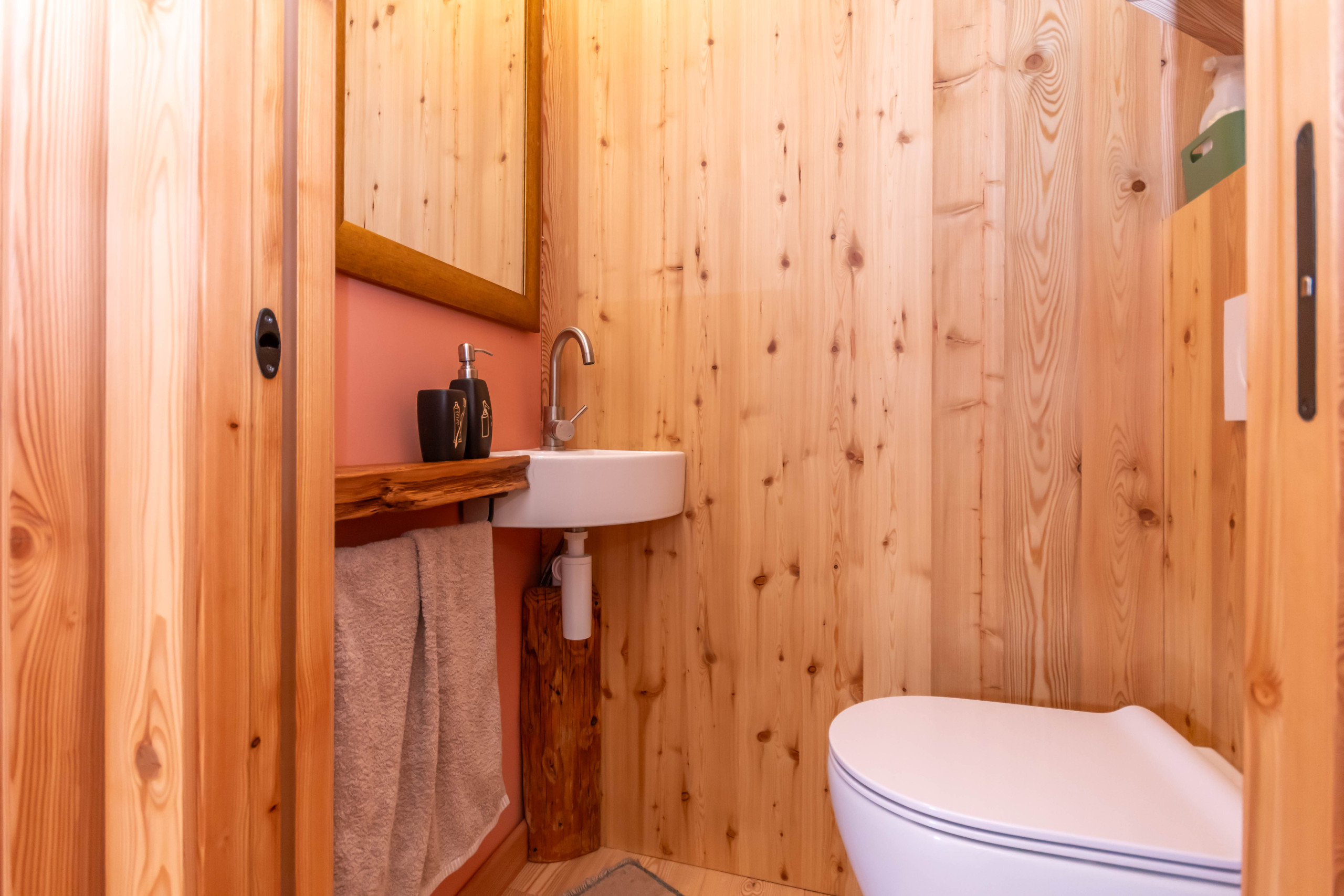 La cucina è attrezzata con tutti i comfort moderni: frigorifero, forno, lavastoviglie, macchina per il caffè, bollitore e utensili per preparare piatti deliziosi. Il riscaldamento centrale assicura un ambiente caldo e accogliente anche nelle giornate più fresche.