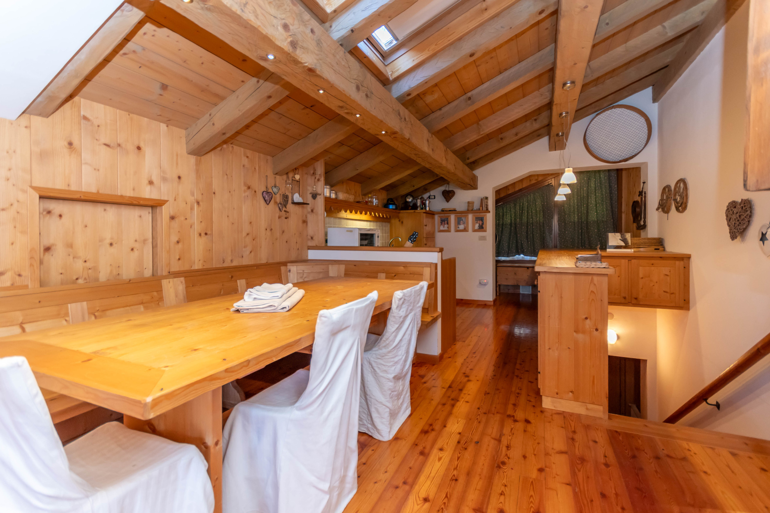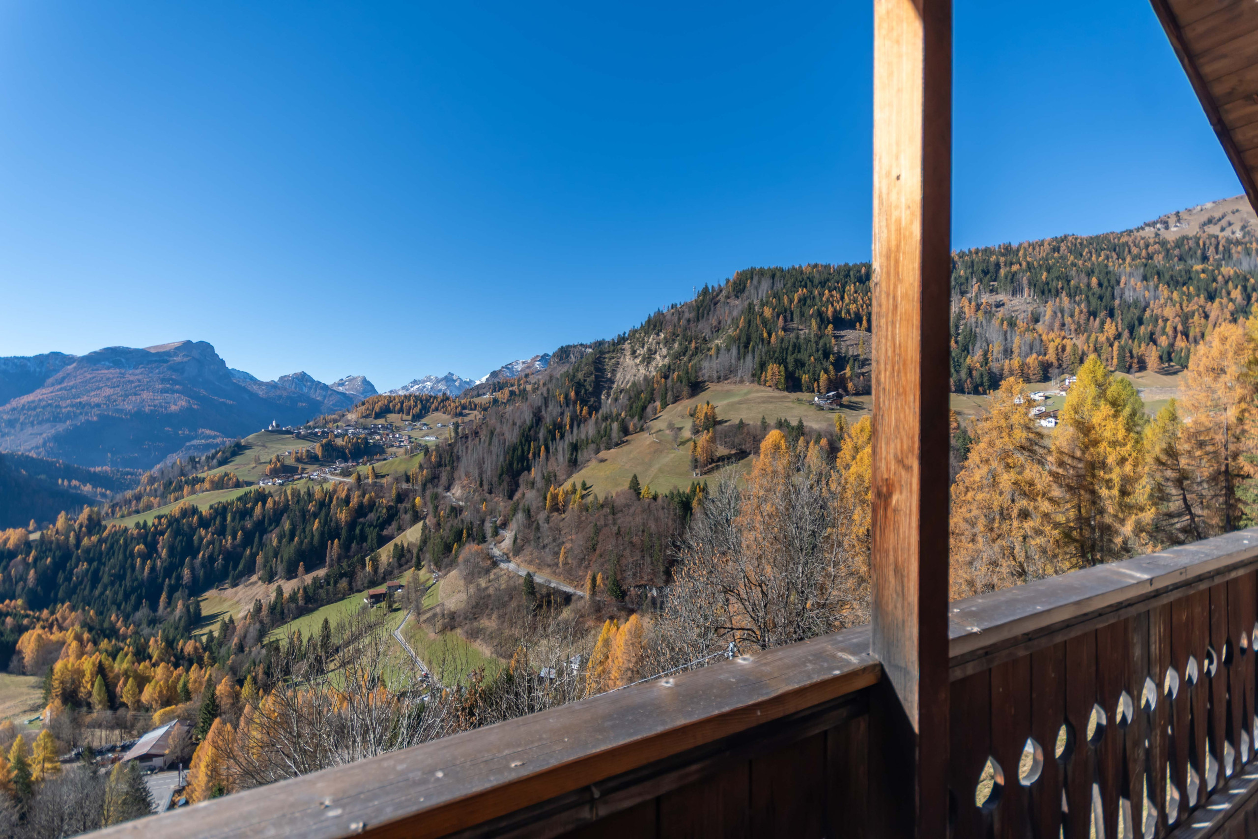 L'appartamento vanta una posizione tranquilla e panoramica, con una splendida vista sulle montagne circostanti. Il balcone esterno è un punto di forza, permettendo di gustare paesaggi mozzafiato e respirare l'aria fresca delle Dolomiti. La terrazza esterna offre inoltre uno spazio ideale per rilassarsi dopo una giornata di escursioni o sci.