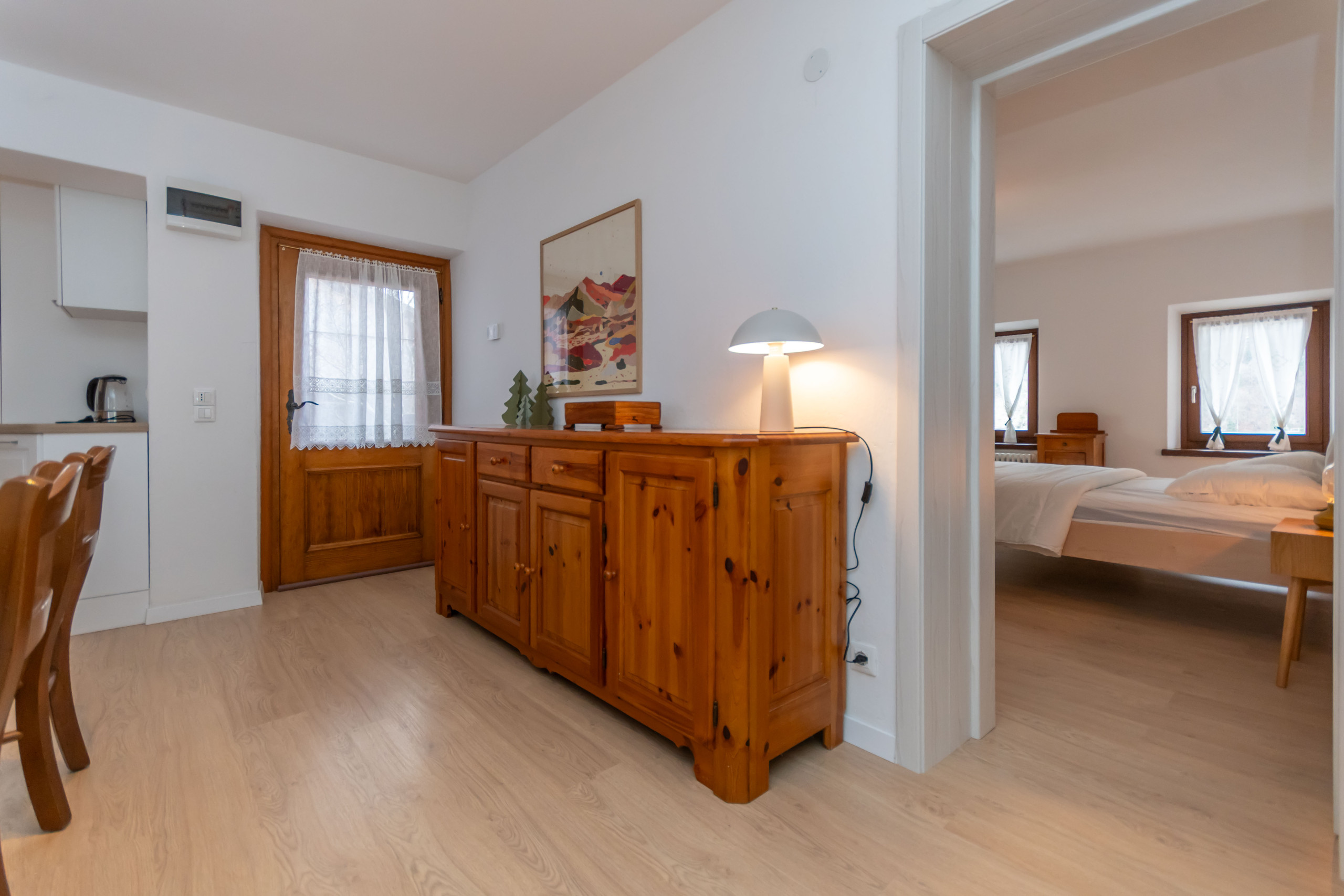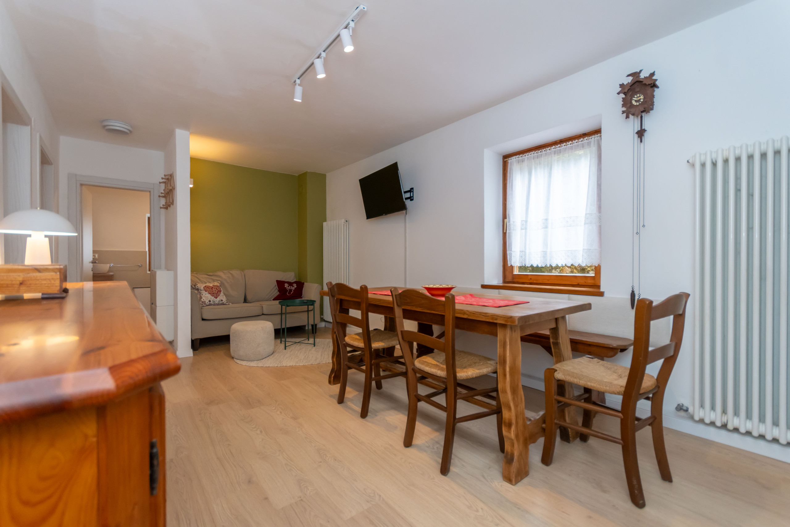 Die Wohnung Alessia wurde vor kurzem mit schönen hellen Holzmöbeln renoviert, die den Raum warm, gemütlich und mit einem magischen Hauch von Bergstil machen.