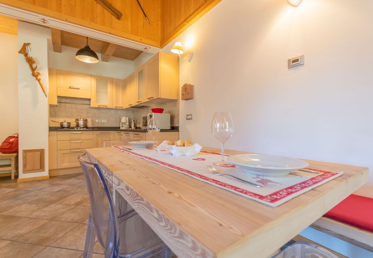 Die Wohnungen sind bis ins kleinste Detail sorgfältig gepflegt worden: die Holzeinrichtungen verleihen den Räumen die typische Wärme und Tradition der Berghäuser, um Ihnen einen wirklich unvergesslichen Aufenthalt zu ermöglichen.