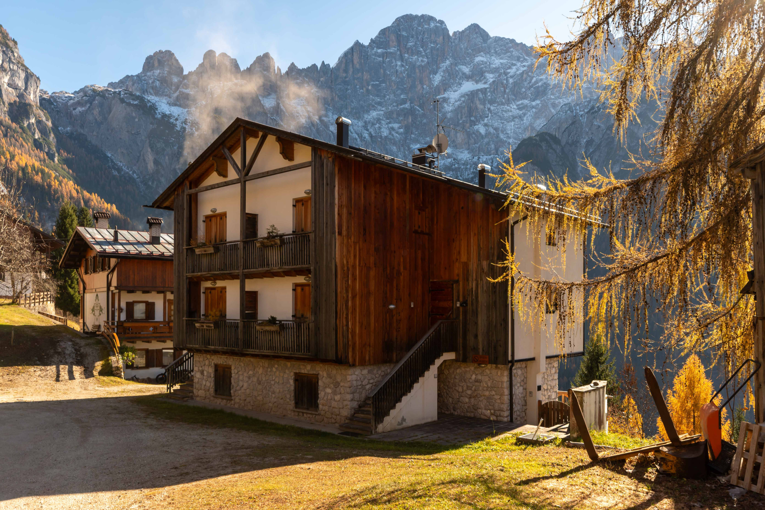 Das Haus befindet sich in dem kleinen Weiler Masarè, ganz in der Nähe des Zentrums von Alleghe und des Skigebiets Ski Civetta. Keine Sorge, auch an verschneiten Tagen können Sie die Wohnung problemlos erreichen: Sie liegt in der Nähe der Hauptstraße.