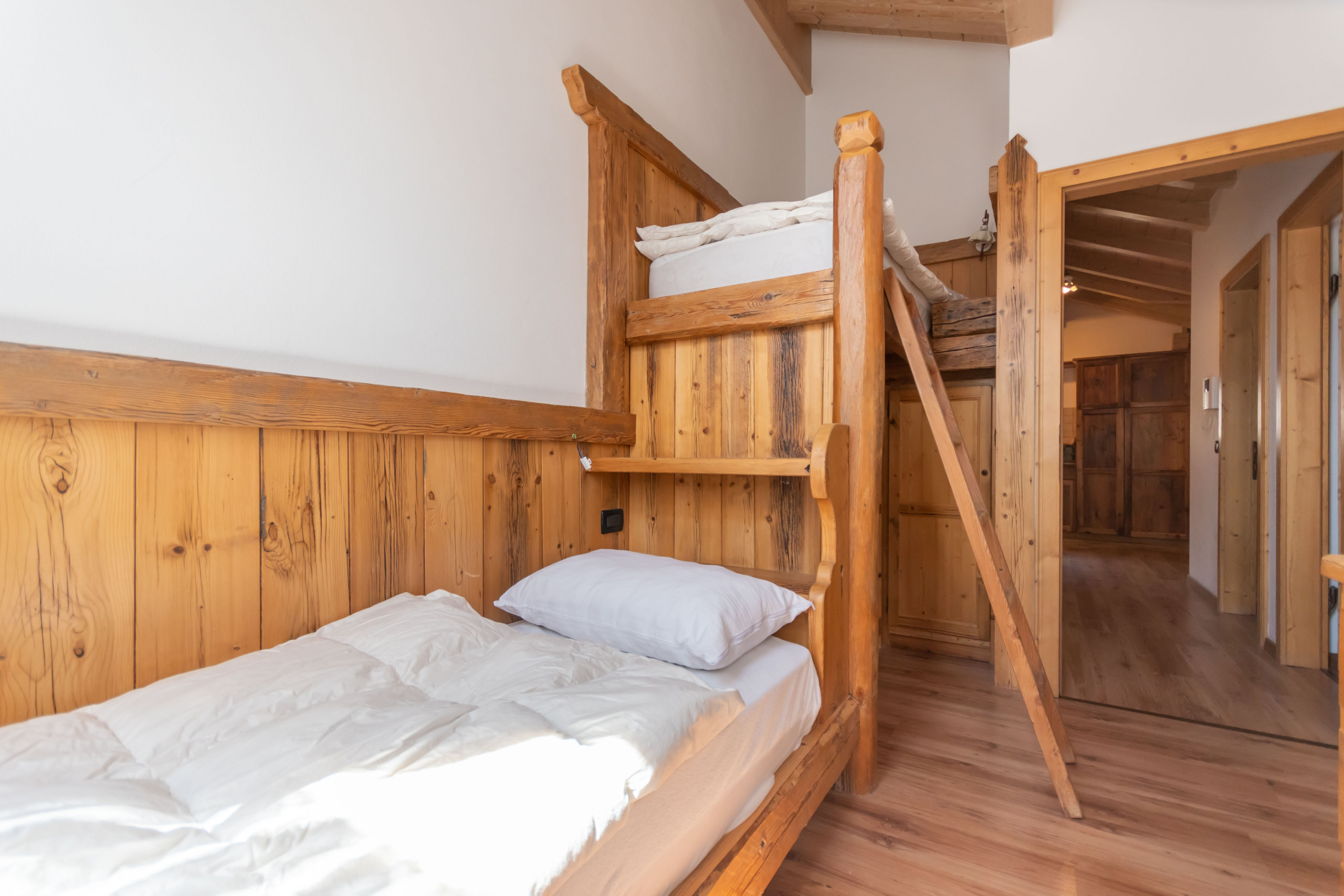 Gewonnen aus einer typischen restaurierten Alpenscheune, ist die Unterkunft geschmackvoll eingerichtet und durch gealterte Massivholzelemente gekennzeichnet, die eine warme und authentische Atmosphäre verleihen.