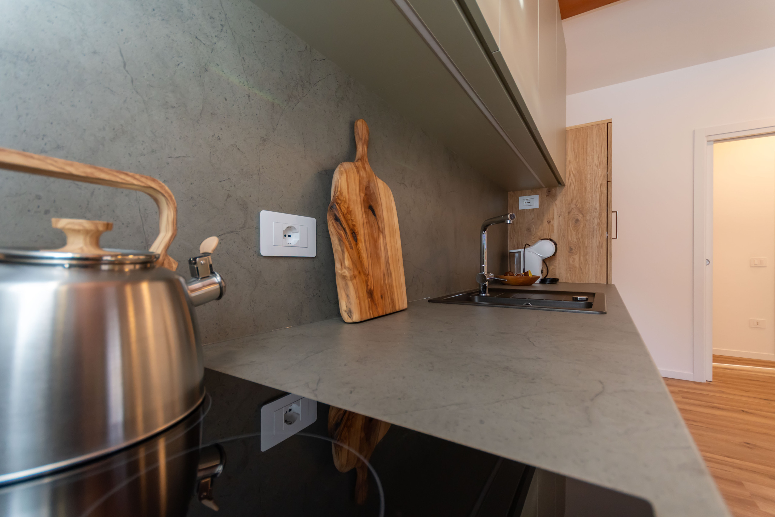 Darüber hinaus verfügt die Wohnung über eine individuelle Gasheizung, eine private Garage im Gebäude und kostenloses WLAN, um den Gästen maximalen Komfort zu bieten. Ein kleiner Balkon bietet Ausblicke auf die majestätischen umliegenden Berge.