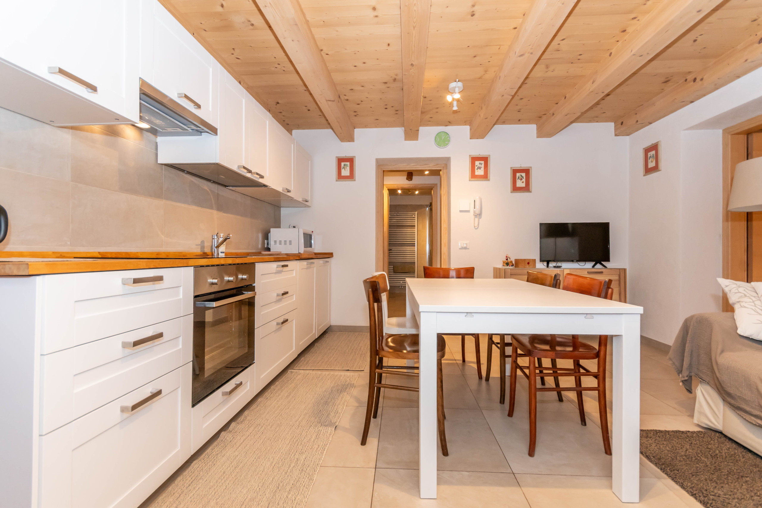 Perfekt für zwei Personen kombiniert die Wohnung harmonisch den Charme der Tradition mit einer traditionellen Dolomit-"Stua" aus Holz und dem Komfort der Moderne mit eleganten und funktionalen Möbeln.