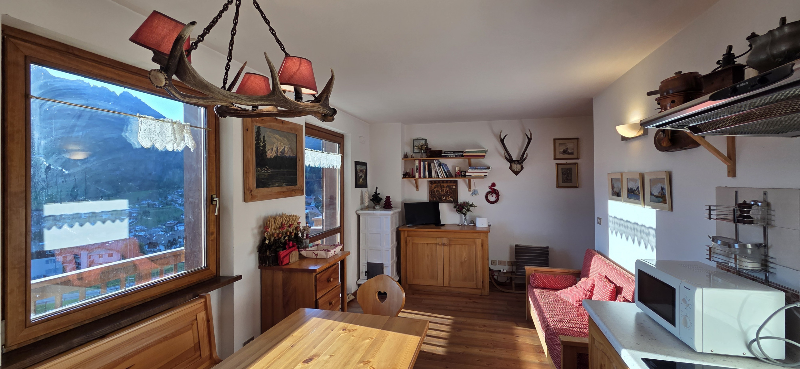 Wenn Sie eine Unterkunft für Ihre Familie für den Winterurlaub suchen, könnten Sie gerade Condominio de Rocia wählen: eine kleine, aber gemütliche Wohnung, die sich in der entzückenden Fraktion Someda befindet, ruhig und abseits des Chaos der größeren Orte. Diese Ferienwohnung befindet sich im zweiten Stock und verfügt über eine einladende Wohnzone mit Küchenzeile und Geschirrspüler, einem Balkon mit Blick auf ganz Moena, einem Doppelzimmer mit anderthalb Bett, einem Zimmer mit zwei Einzelbetten am Boden plus drittem Bett über einer Brücke, einem Badezimmer mit Fenster mit Dusche und Waschmaschine. Kostenloses WLAN. Es besteht die Möglichkeit, Ski und Skischuhe im Keller zu lassen, während es keinen privaten Parkplatz gibt, sodass die Gäste ihr Auto entlang der Straße, kurz vor der Wohnung, abstellen können. Um den Zustand der Immobilie und den wunderschönen Holzboden besser zu erhalten, sind Haustiere NICHT erlaubt. Beeilen Sie sich, Ihren Urlaub zu buchen!