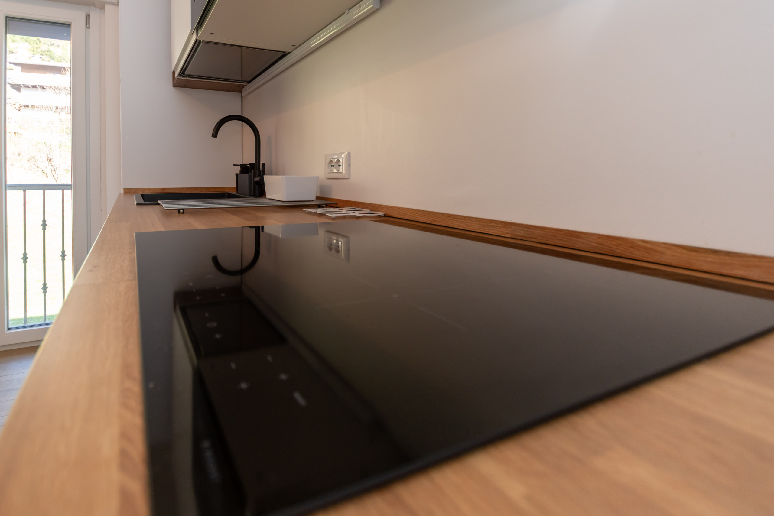 - Wohnbereich mit ausgestatteter Küchenzeile und Doppelbettsofa
