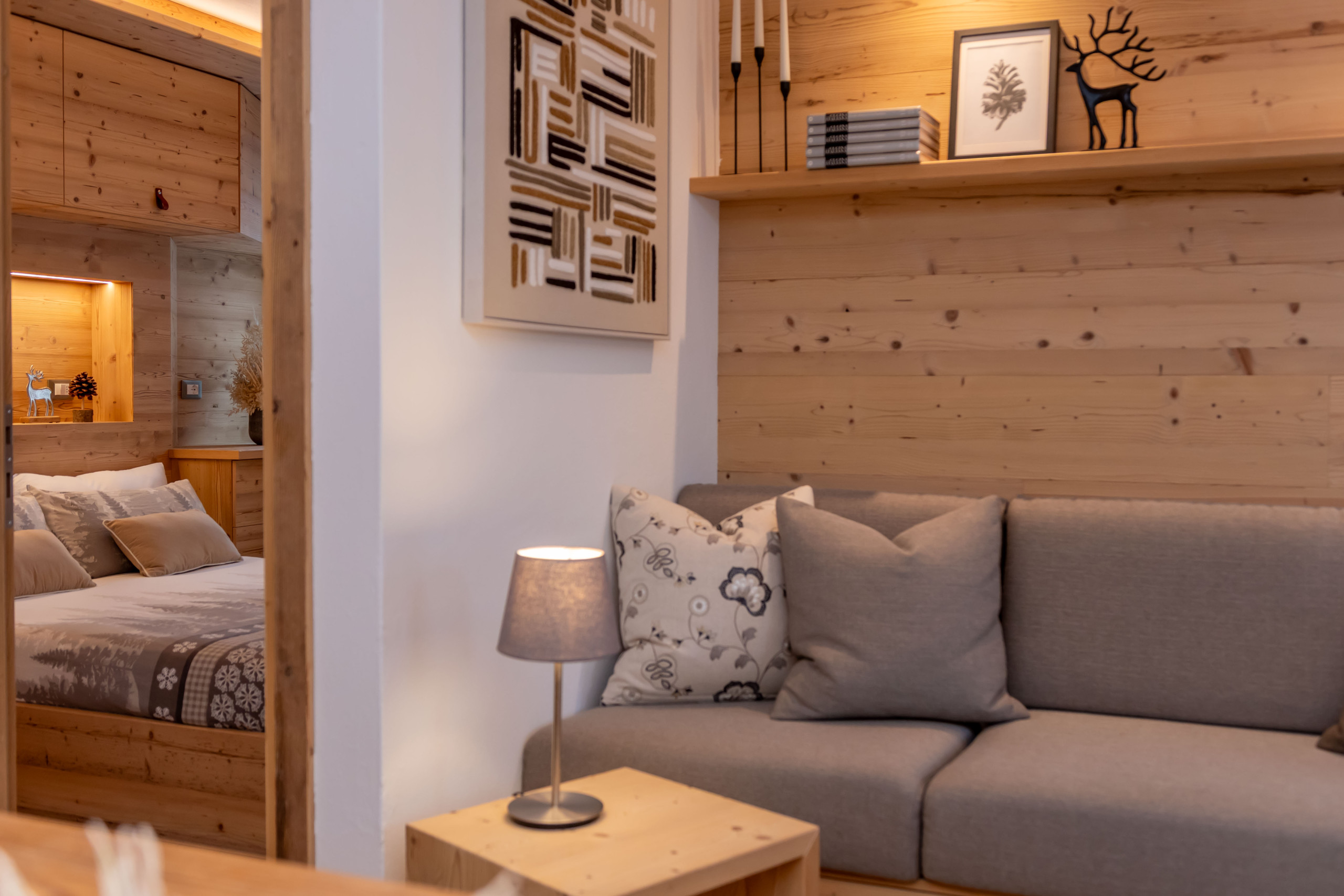 Dank der kostenlosen Wi-Fi-Verbindung auf jeder Etage können Sie sich bequem mit dem Internet verbinden, um Ihre Abendunterhaltung zu genießen oder aus der Ferne zu arbeiten. Noch nie war intelligentes Arbeiten in den Dolomiten so einfach!