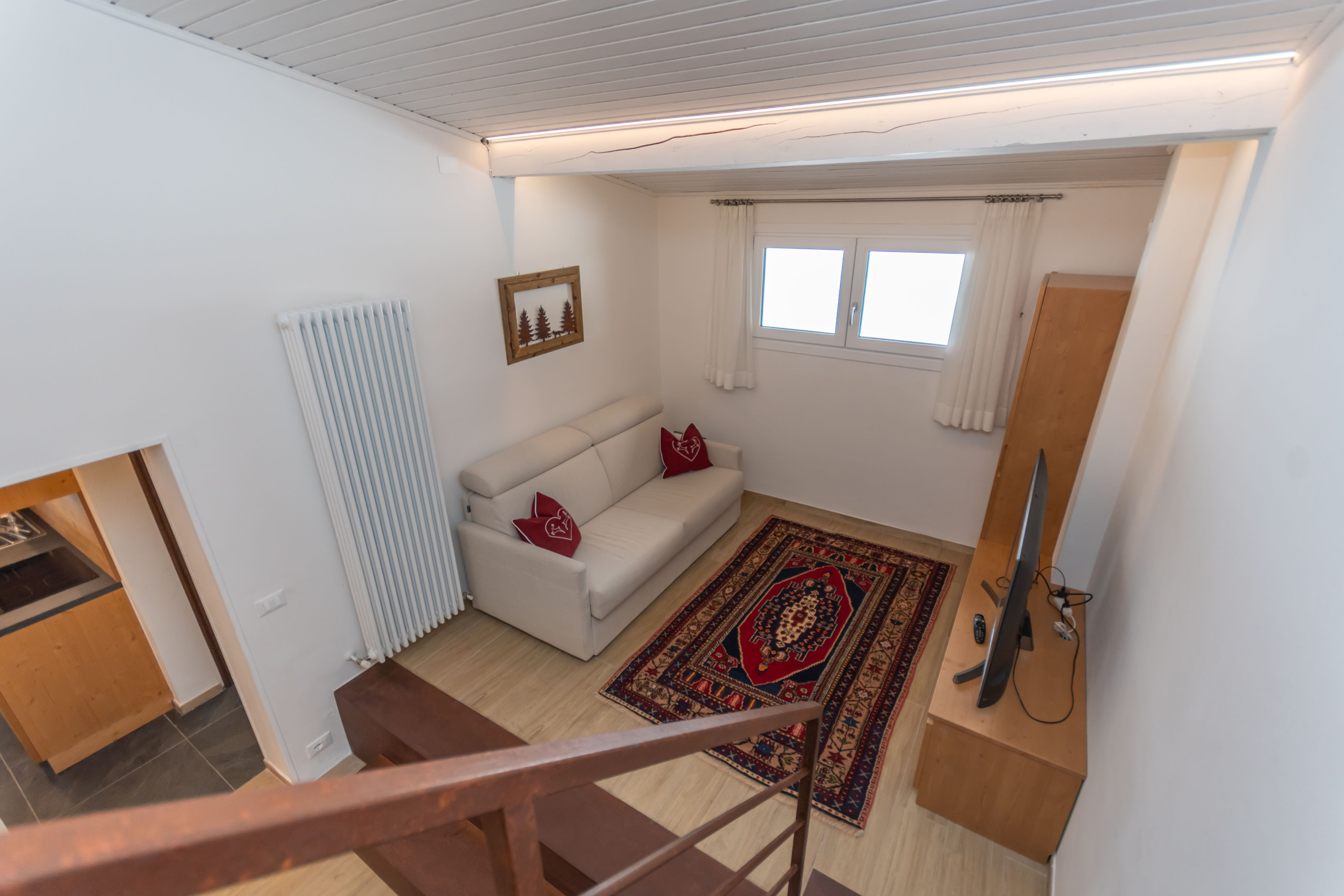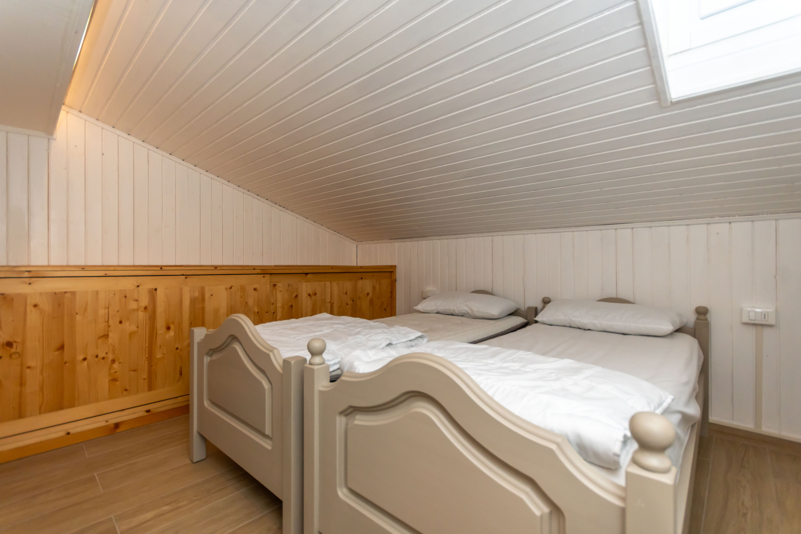 Die Einheit verfügt über ein Zimmer mit 2 Einzelbetten, einem Schlafsofa im Wohnzimmer und einem weiteren Doppelbett in der Galeriezone und kann bis zu 6 Gäste aufnehmen. Das Badezimmer mit Dusche bietet Komfort und Funktionalität nach einem Tag auf den Pisten.