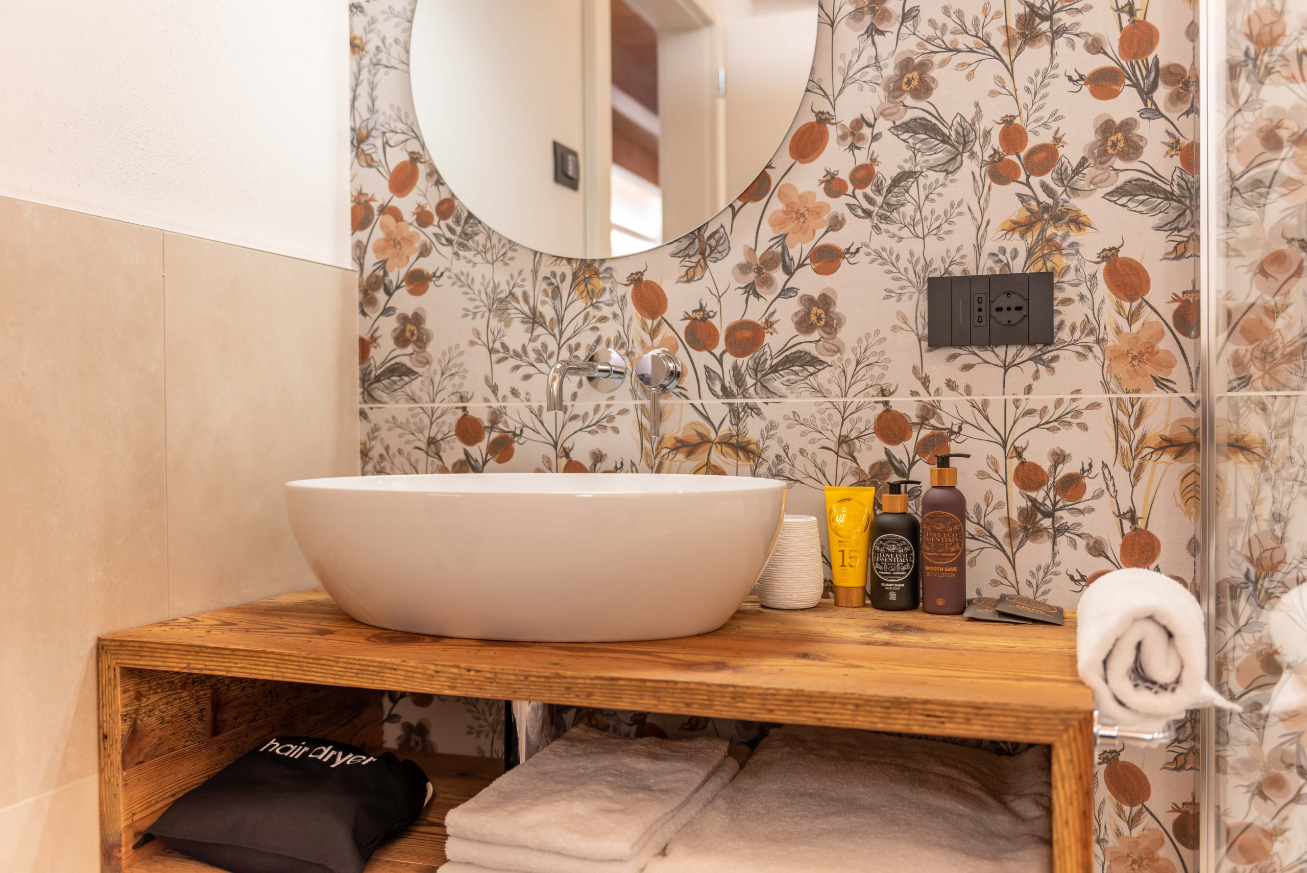 Unsere Zimmer, eingetaucht in eine Atmosphäre von Eleganz und Einfachheit, wurden mit Liebe und Aufmerksamkeit zum Detail gestaltet und bieten Ihnen den Komfort und die Entspannung, die Sie während Ihres Aufenthalts verdienen. Und was könnte besser sein, als aufzuwachen und den Duft von altem Holz zu genießen und die atemberaubende Aussicht von Ihrer geräumigen Terrasse aus zu bewundern, umgeben von der Magie der Dolomiten?