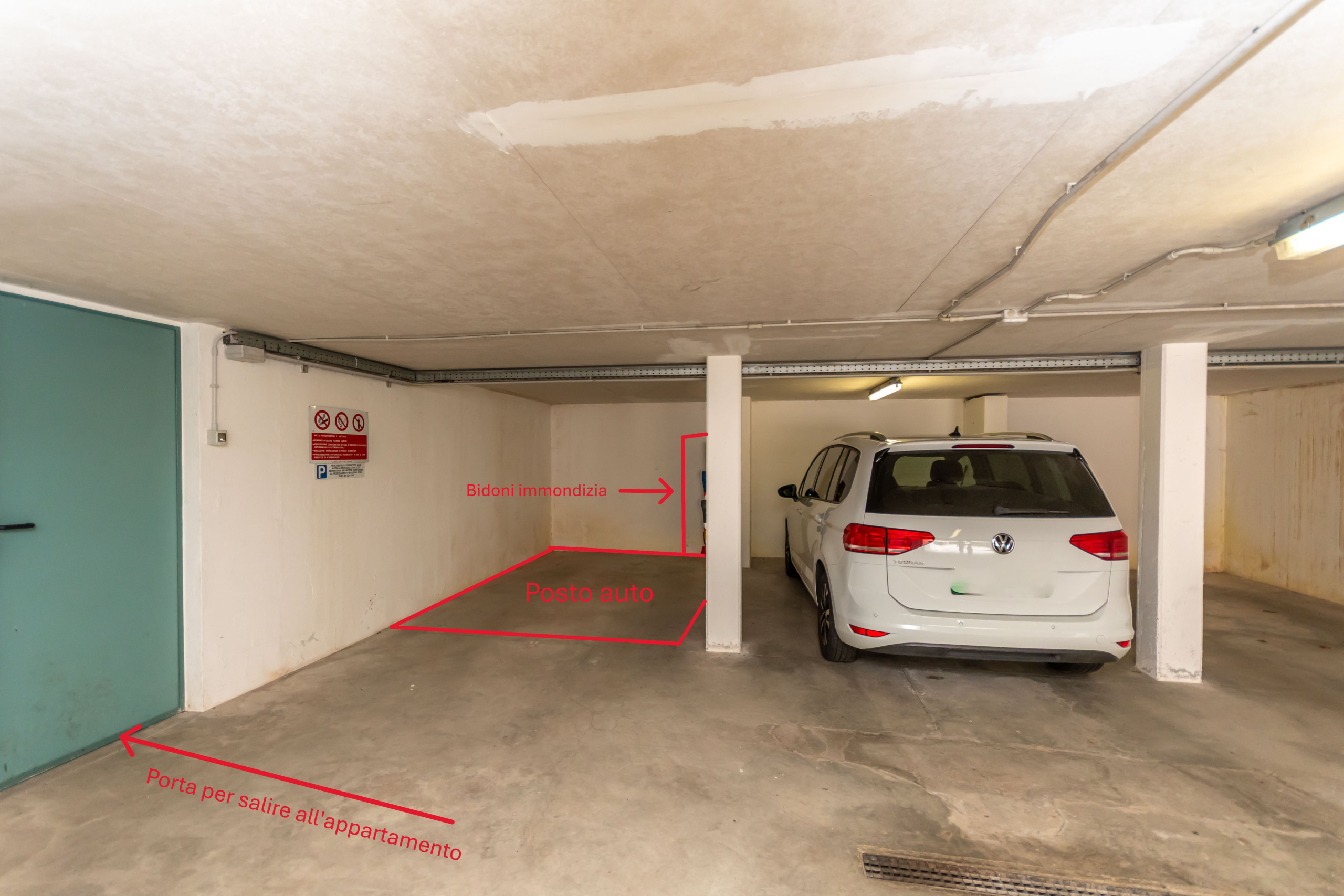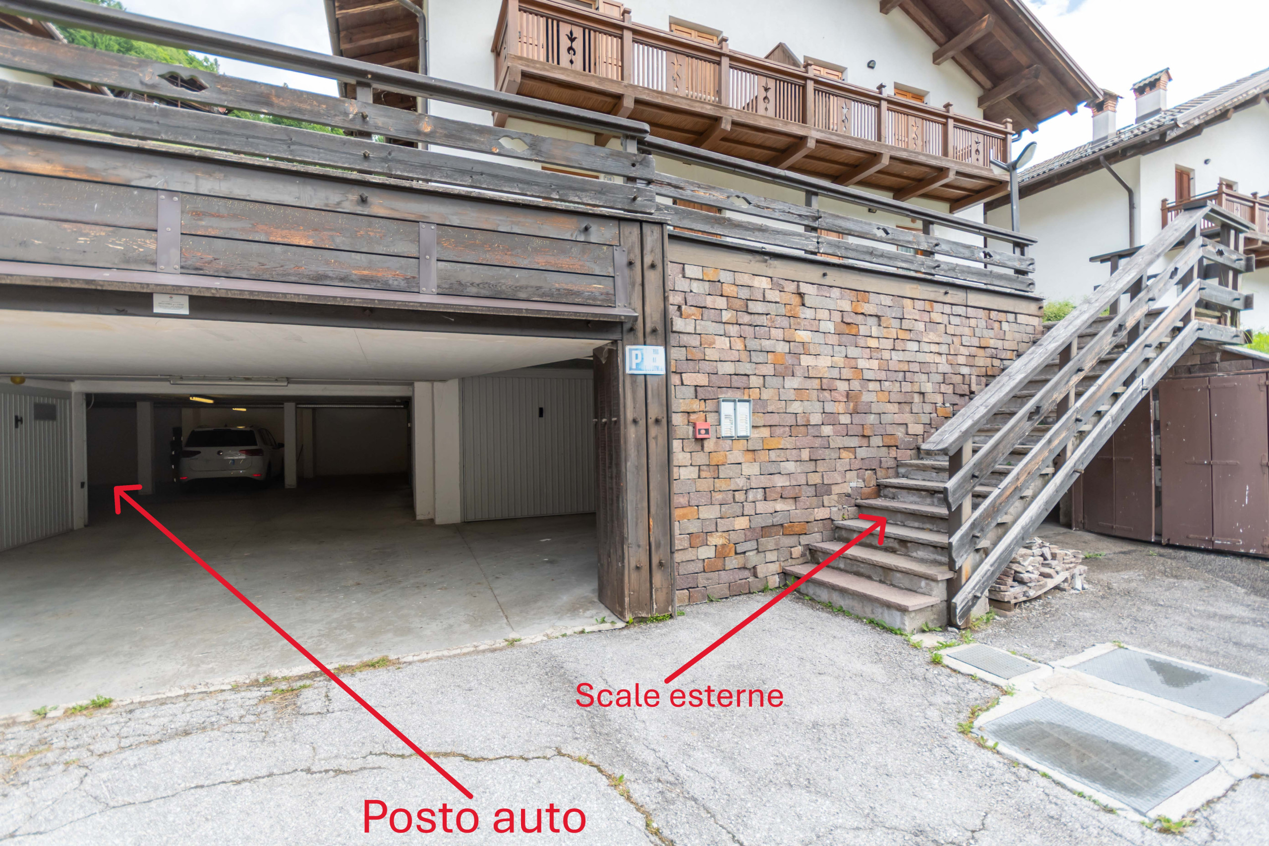 The apartment is located on the ground floor of the building, but to access it, it is necessary to climb 2 flights of stairs from the garage level. It indeed has a convenient private garage for parking, ensuring maximum convenience during the stay. The outdoor garden, directly accessible from the living room, offers a delightful outdoor space where one can relax and enjoy the surrounding nature.