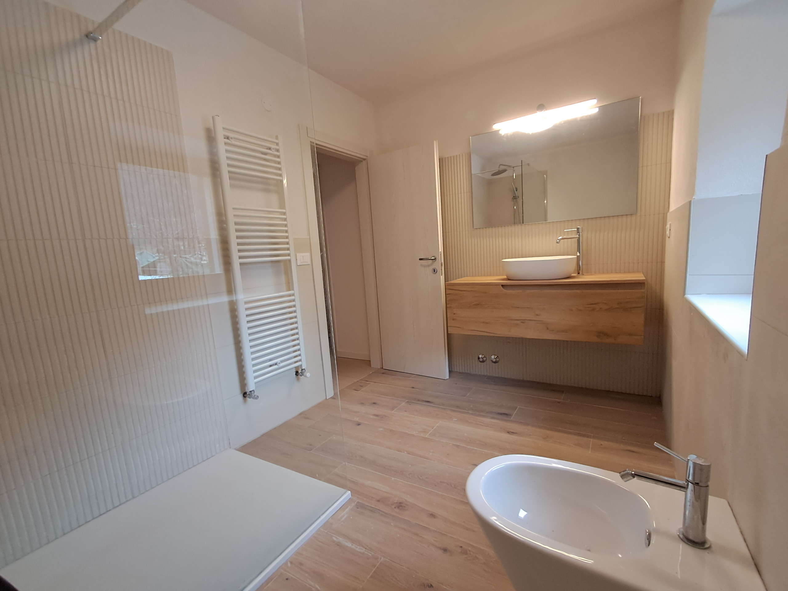 The bathroom is very spacious and has a shower, toilet, bidet and washing machine: everything you need for when you come back muddy from a mountain bike ride or after an afternoon at the park with the little ones.