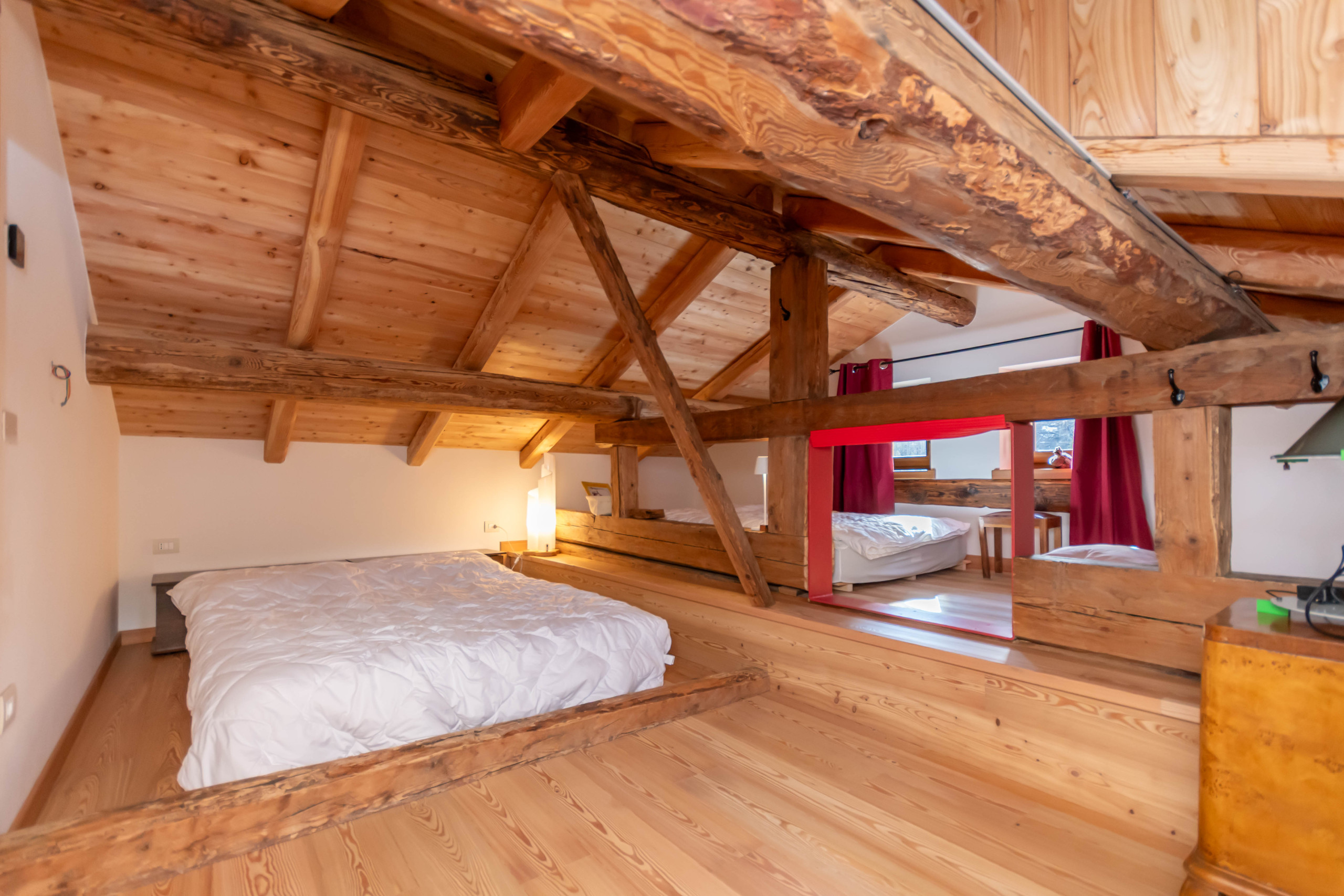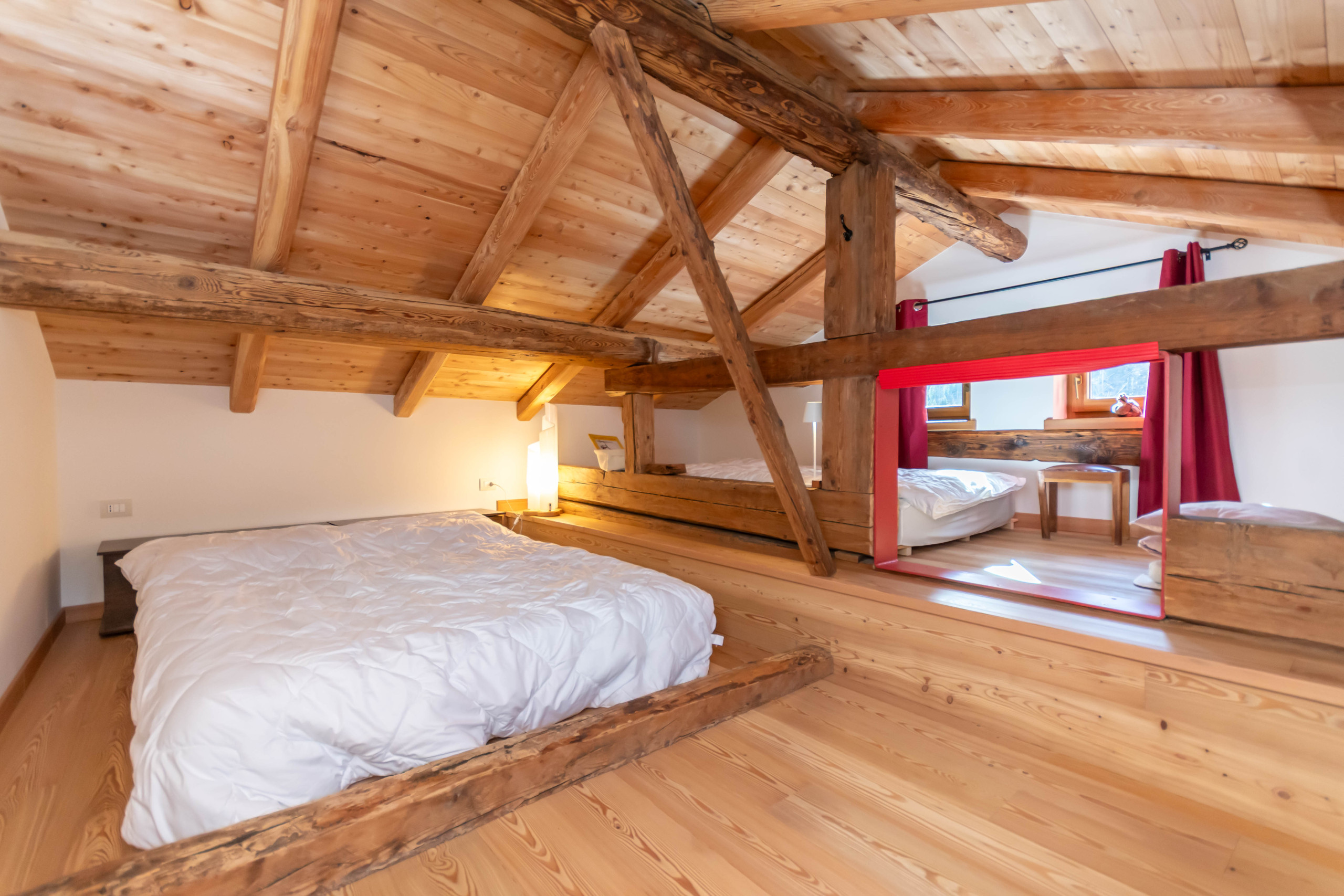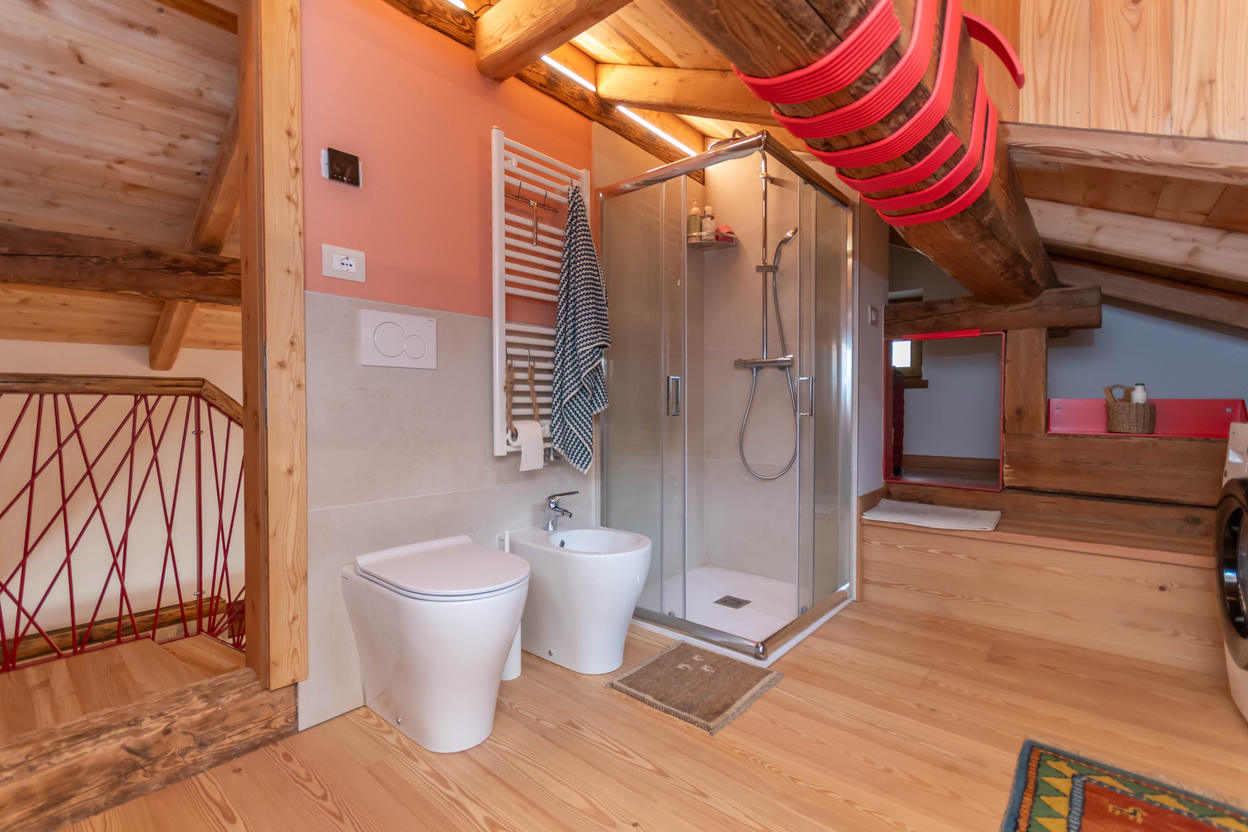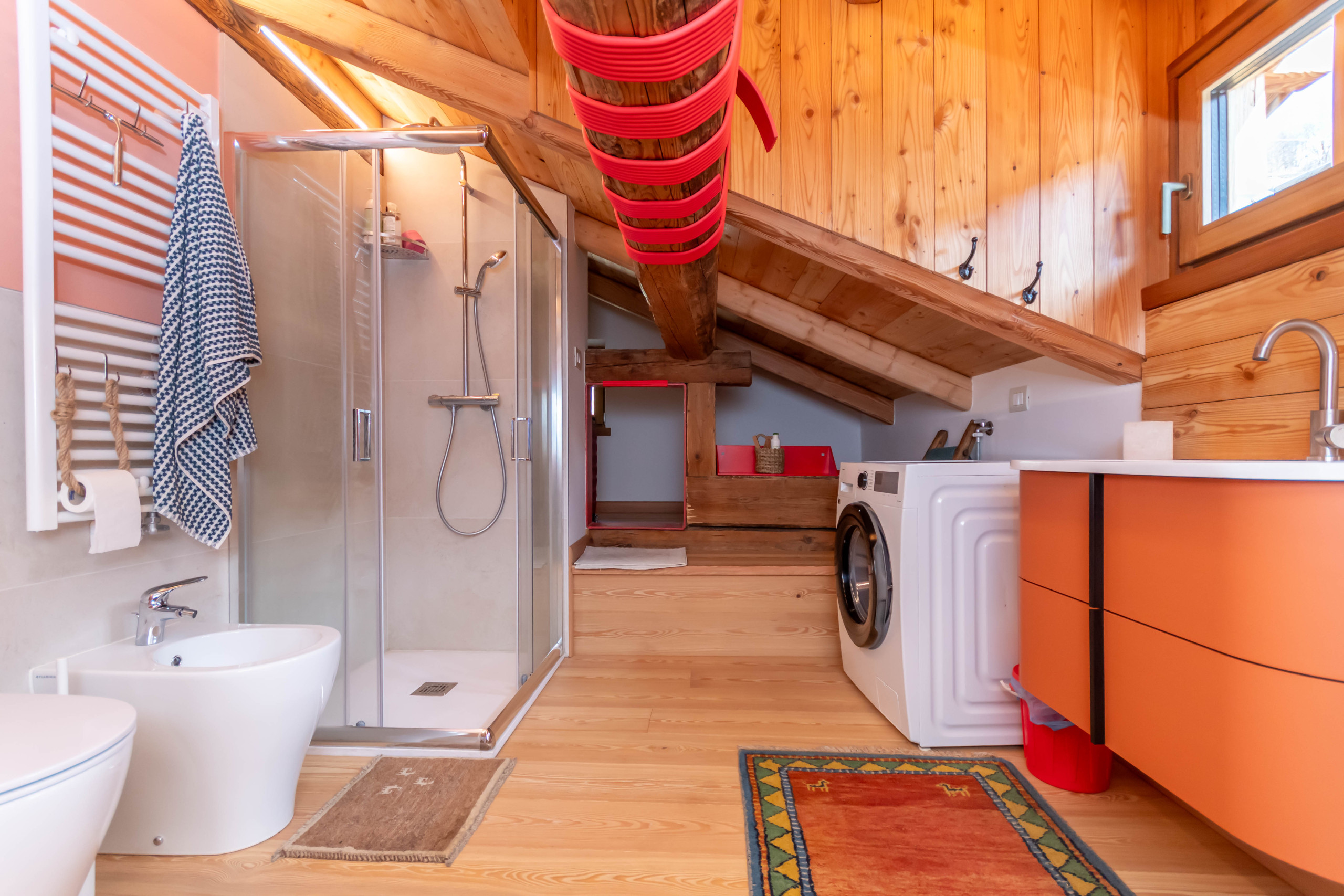 Obtained from the wise renovation of an ancient Tabià, the apartment is developed on two floors for a total of 75 sqm, creating an intimate and well-organized atmosphere. On the first floor, a main double bedroom with an additional single bed and a complete bathroom with shower. On the ground floor, the fully equipped kitchen and the living room with a comfortable double sofa bed. During the night, thanks to the sliding door, it is possible to transform the living room into a real bedroom, ensuring privacy for all guests. A small bathroom with toilet and sink completes the layout. The accommodation is ideal for hosting up to 5 people, offering comfort and functionality.