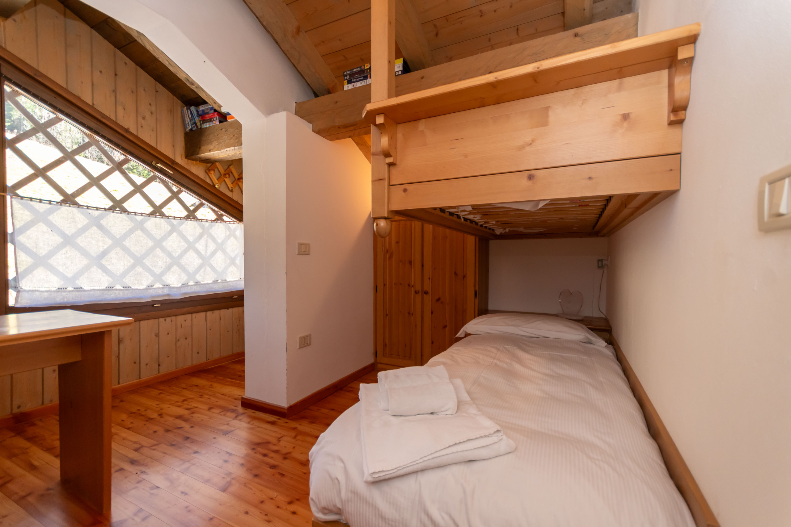 The apartment boasts a tranquil and panoramic location, with a stunning view of the surrounding mountains. The external balcony is a strong point, allowing you to enjoy breathtaking landscapes and breathe the fresh air of the Dolomites. The external terrace also offers an ideal space to relax after a day of hiking or skiing.